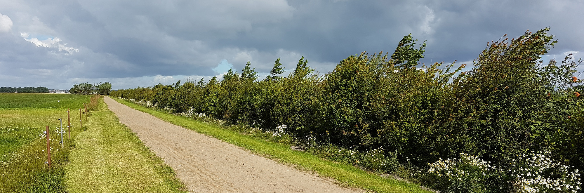While hedgerows are used generally to enhance landscapes and boost habitats for wildlife, windbreaks, or shelterbelts, are more specifically used for protecting areas of land from exposure to undesirable levels of wind. They are created by planting a single or multiple rows of trees or larger shrubs in a linear pattern, upwind of the area being protected. Renovating a windbreak can involve widening an established row of vegetation and partially replanting or replacing the trees or shrubs to restore or extend it. They can be employed on any kind of land that would benefit from wind protection and has sufficient space and soil strength to support linear planting.